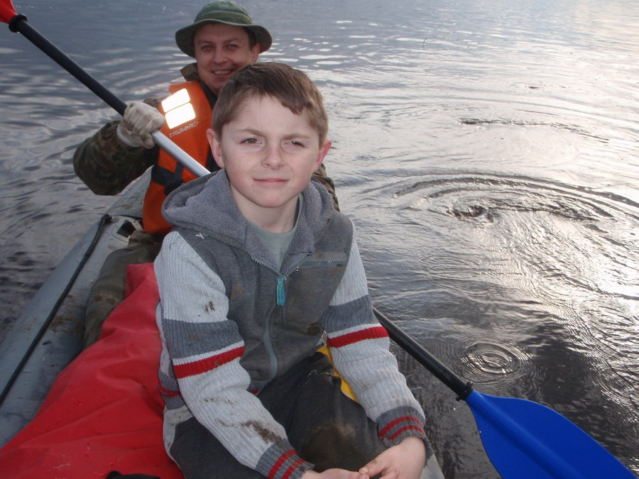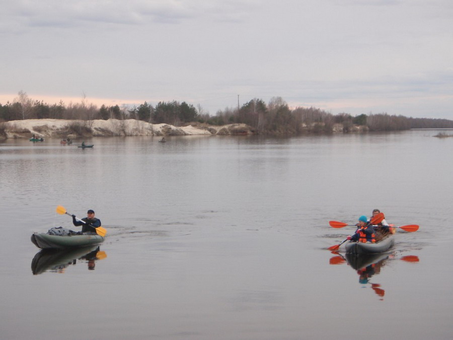 Не спеша восемь суден начали свой путь на северо-запад по Льве. Поначалу река была очень гостеприимной, с глубокой водой и спокойным течением. Но даже в таком спокойствии несколько ребят окунулись, один из них Миша Трафимович (СБХ), не справившись с головокружением (видимо от переизбытка свежего воздуха) рухнул в воду, выходя из байдарки! Зато искупался, сверкнув подтянутым спортивным телом.