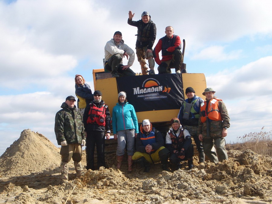 Утро выдалось солнечным, но ветреным. Собирались долго. Пофоткались на фоне большого желтого экскаватора, брошенного местными рабочими.