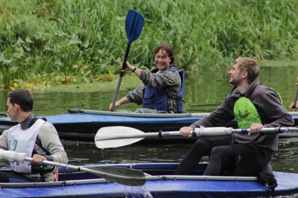Мы неспешно вырулили на центр реки, и сразу оказались у основания хвоста колонны гребцов (ну скорее не колонны, а груды лодок, тел и весел). С боков стали поджимать соперники. Это сильно сковывало нашу траекторию и лишало пространства для маневра. Выйти на фарватер в таких условиях было почти невозможно. А чистить брюхом мели было занятием не из приятных. От такого тесного соседства с другими гребцами нужно было избавляться. И мы, недолго думая и не сговариваясь, нажали на весла. В голове поселился неугомонный «капитан», которому непременно стало нужно всех обогнать. Так началась планомерная размеренная борьба за лидерство.