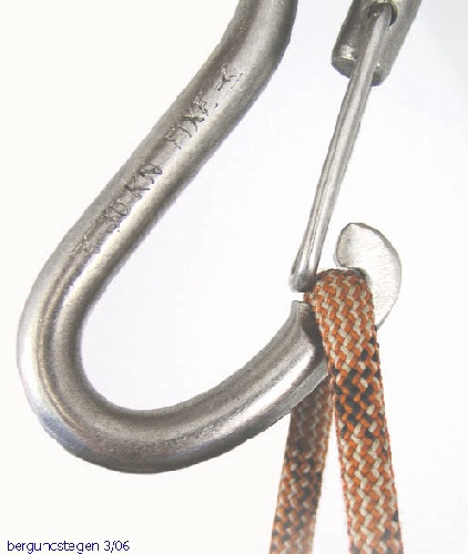Примечание OeAV (австрийского подразделения немецкого союза альпинистов): такие карабины используются в наших залах длительное время и очень удобны в качестве спусковых. Эта досадная авария уникальна и на основе единичного случая мы не считаем необходимым требование отзыва и замены всех карабинов этого типа. Причина этой аварии – ошибка пользователя, заведомо ясная даже начинающим скалолазам. Мы будем продолжать пользоваться подобными карабинами, порекомендовав их производителю доработать конструкцию для устранения опасного места в следующих партиях.