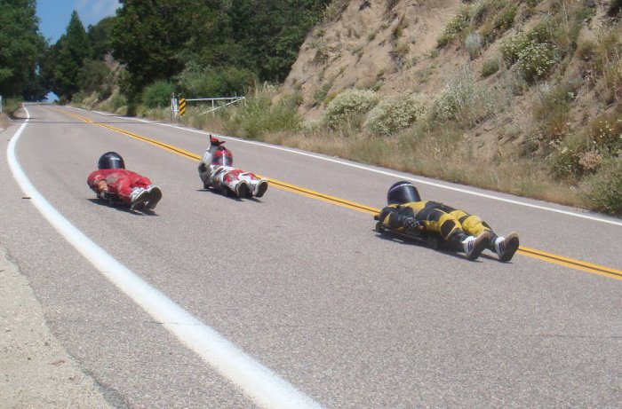 И последнее по порядку, но не по степени важности – это уличный санный спорт, который появился в южной Калифорнии в среде скейтбордистов. Эти ребята однажды обнаружили, что могут развить гораздо более высокую скорость, лежа на доске и съезжая вниз по очень крутым склонам. На сегодняшний день этот вид экстрима приобрел большую популярность в Европе. Если и вы хотите попробовать, то приготовьтесь к возможным травмам, а именно к переломам, которые очень возможны, потому что при спуске на санях по склону на скорости 96 км/ч тормозами часто служат ноги.