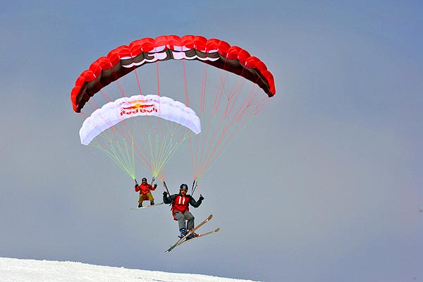 Спидрайдинг представляет собой удивительную смесь – параглайдинга и катания на лыжах. Спидрайдеры используют специальный вид парашюта и лыжи, чтобы стремительно ехать вниз по склону и при этом набирать скорость. Этот вид эстримального спорта очень опасный и подразумевает такие высокие скорости, что на некоторых горнолыжных склонах его уже запретили. Благодаря использованию парашюта скорость скольжения неимоверно увеличивается: невозможно разогнаться настолько, просто катаясь на лыжах.