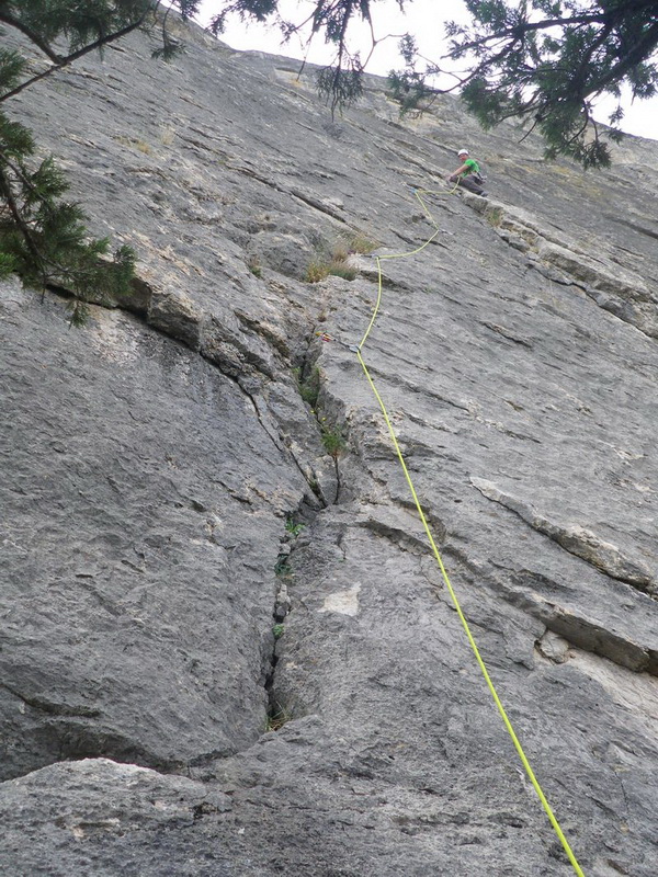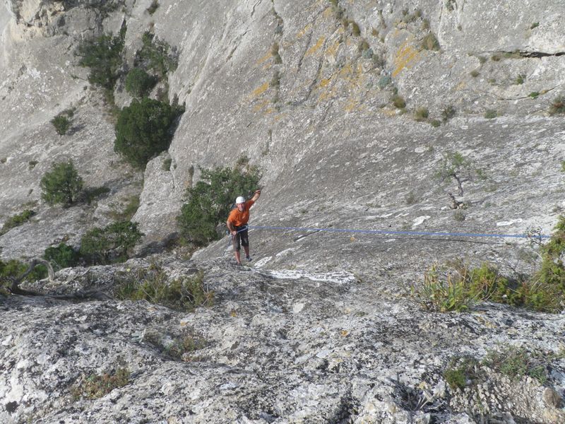 Приятный, короткий маршрут. Ветер был столь силен, что иногда казалось, что оторвет от стены. Интересно лезть верхнюю часть второй веревки и то благодаря ветру и отсутствию адекватной страховки на этом участке.