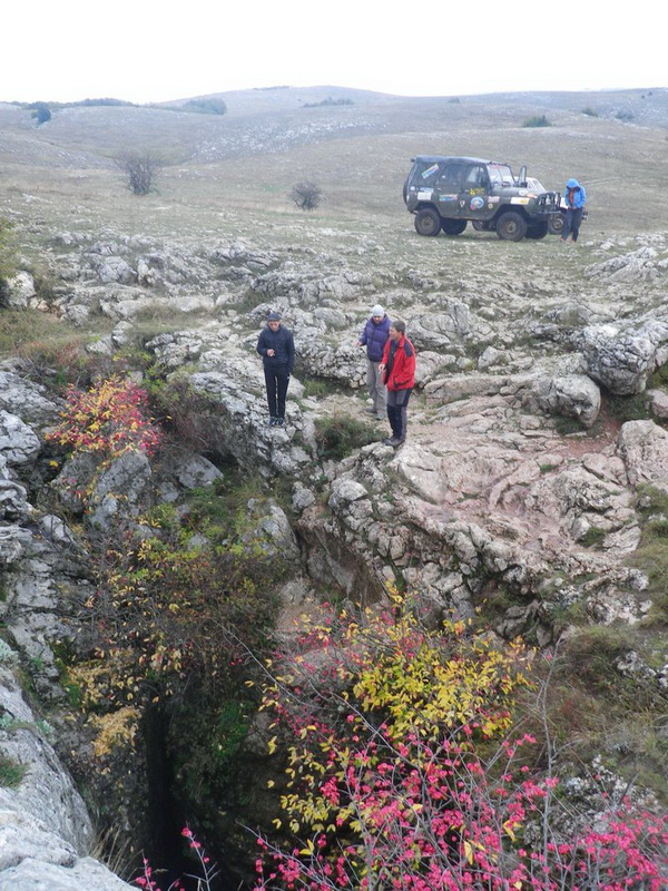Назавтра погода испортилась окончательно и бескомпромиссно. На гору идти был не вариант. В этот день сотрудники КСС Игорь и Олег собрались на вылазку в пещеру Крубера с целью показать приезжей журналистке, что это такое, с чем его едят и куда оно все пошло. Нас пригласили за компанию. Так, как дождь уже лил, то отказываться было глупо. Сидеть на базе, или съездить на плато, слазить в пещеру. Какой может быть выбор. И в 11 утра, погрузившись в спасательский УАЗ мы выдвинулись.