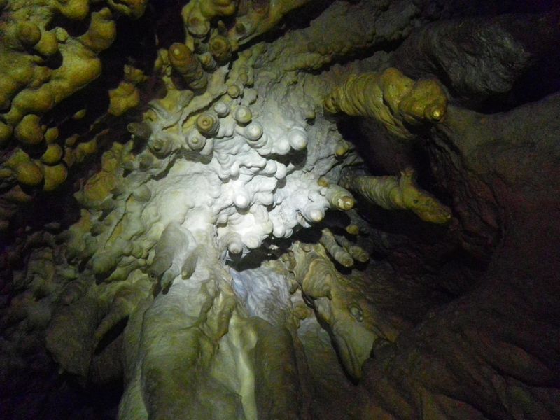 Пещера не большая – 1 спуск, метров на 40, несколько гротов и отнорков, которые ходятся ногами. Ожидаемо сыро и темно. Капает вода, свисают всяко-разно сталактиты…