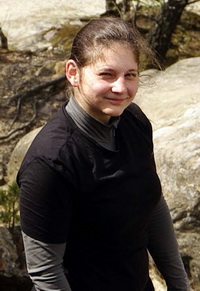 Была с нами Ира. Она, значит, в составе секты ездит не впервые (хотя так не с кем не контачит и не была доселе знакома) - смелые довольно поступки. А подчас у нас можно увидеть оттенки маргинальности. Короче, я решил проведать, как там лазят на жумарах и придя обнаружил спасработы. Ира пристегнулась за самостраховку на половине пути (где был балкон), а сверху спускался Андрюша Бай, который был там определен на номере, как консультант, следящий, чтобы поднявшийся всё правильно сделал, не растерялся и наладил на спуск правильно тормозное устройство.