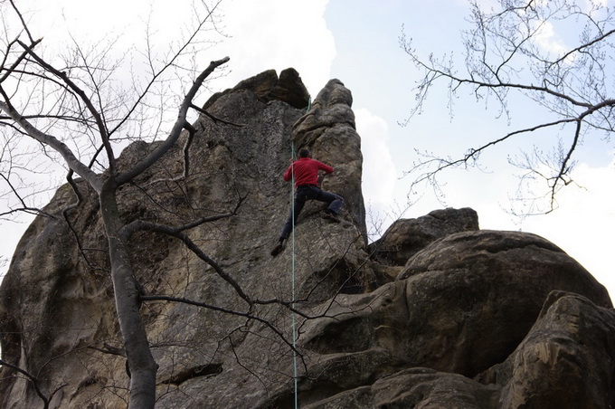 Добрая сотня маршрутов есть здесь на этих останцах – скалах Довбуша. Если в это время, как теперь, то они не запрессингованны посетителями, отдыхающими и страждущими позаниматься скалолазанием.