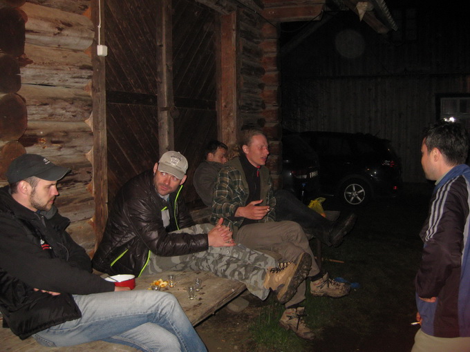 Назад шли по той же треккинговой тропе, но только уже вниз. Павлюченку и его Модуль отправили несколько раньше, чтобы начинали потихоньку хозяйствовать. Уже смеркалось и приехал Сережа Климович и ещё пять человек. А ключи от хаты у нас.