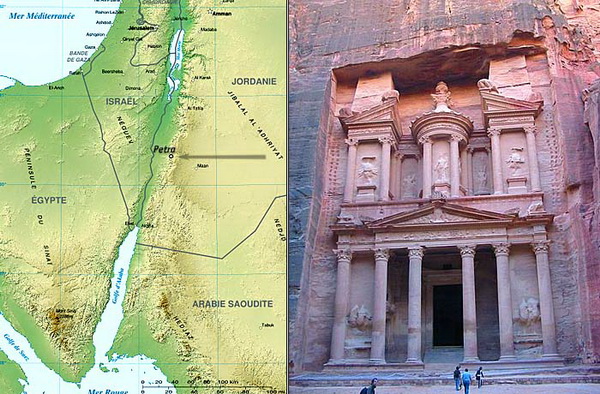 Пе́тра (араб. البتراء) — древний город, столица Идумеи (Едома) 18-2 вв. до н. э.. Расположен на территории современной Иордании, на высоте более 900 м над уровнем моря и 660 м над окружающей местностью, долиной Аравы, в узком каньоне Сик. Проход в долину — через ущелья, расположенные на севере и на юге, тогда как с востока и запада скалы отвесно обрываются, образуя естественные стены до 60 м в высоту. В 2007 году Петра была избрана одним из новых семи «чудес света».