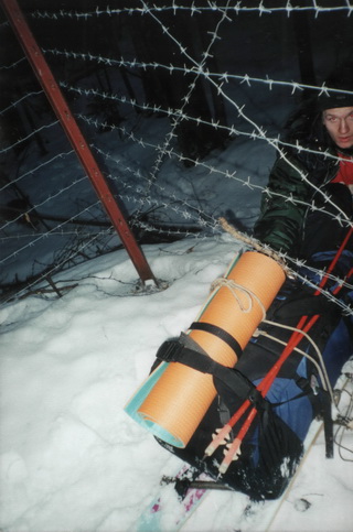 Спокойно мы ехали где-то час-полтора, пока неожиданно не объявились двое в пограничной форме. Первый совсем молодой, второй - прапорщик.  Был он, как и все прапорщики: невысокий, с умеренным пузом, свиными глазками и характерным не терпящим возражения голосом. Они, скорее всего, бы прошли мимо, но сильно били в глаза наши огромные рюкзаки, да ещё и лыжи. Вообще-то мы заранее знали, что едем в приграничную зону, и что нас могут ссадить с поезда. Однако, полагали, что это маловероятное событие. Естественно, что нужных документов у нас не было.