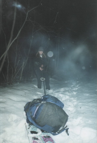 А год назад был поход, который назывался Русское Поле Экспериментов. Срок его составил 24 дня. Сначала главной доминантой событий была угроза провалиться под ненадежный лед Онежского озера, которая сменилась пробой на крепость карельским тридцатиградусным морозом. Ближе к концу мы влезли в тайгу, в настоящую зимнюю глушь - глупые, молодые и наивные. 12 января прошлого года мы были среди развалин нежилой деревни Ворожгора. Ближайшим населеннным пунктом был поселок Валдай. До него по сугробам без сил и продуктов не шлось. Обычно бежишь подальше от цивилизации, но тут мы наоборот шли к ней поскорее. И, встретившийся нам случайно наезженный зимник, был просто, как подарок. В Валдай прибыли в сильнейшем изнеможении. Но прошло пару дней и снова мы засобирались в Карелию, но уже на будущий год и точно также, непременно зимой, но только уже на две недели.