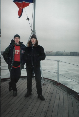 Вышли к Авроре. Сегодня были дни блокадного Ленинграда и на крейсер пускали на халяву. Где-то на палубах Дед ненадолго успел потеряться.