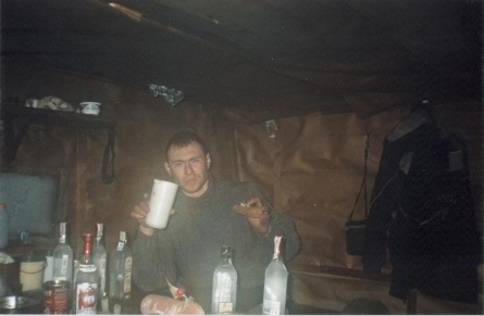 Был шестой час вечера. Назад с ценной ношей я пошел очень шустро. Сразу же начали пить. Пили за походы, за то, чтобы добраться домой малой кровью, за Диджея Яся и т.д. Поход, можно считать завершился, пускай он и отличался от задуманного. Но был найден выход. То, что мы пошли в Пояконду был вариант единственный. Выходили смотреть сияние, оно было слабосильным. 25 градусов мороза. Избу Рука натопил, печка уже не чадила.