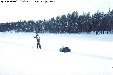 Не припомню я таких морозов у нас в Белоруссии, как в этом январе. Термометр показывал -28 градусов. Именно в этот день 21-22 января, я организовал пьянку на озере Материнское. Сильный мороз, темное звездное небо, еще не наскучивший снег и лед и пьяное эйфоричное состояние оставляли не отразимые впечатления. Быстрее хотелось в большой поход.