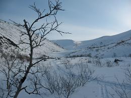 Председатель кооператива сегодня сплоховал. Увел и лыжников и собак, сбросив высоту вдоль русла ручья. А ведь можно было долго продолжать путь по боковой террасе.
