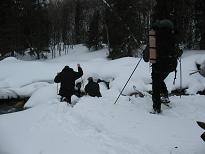 Поднялось пуганное большое стадо диких оленей и со всех ног пустились прочь. Была в снегу промоина, попили воды.