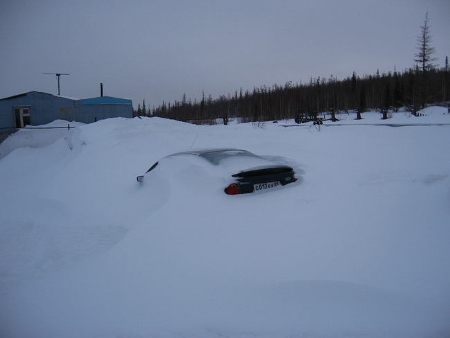Ровно через пять минут навстречу из белого мрака выплыл гигантский валун-останец со снежным надувом-воронкой по своей периферии.