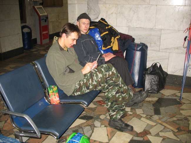 На вокзале сложилось удачно. Мы купили билеты на 375-ый поезд до Москвы. Причем вовремя. Потом собралось в зале, где шел вялый ремонт, большое скопление умеренно галдящих азиатов. Сформировалась инертная очередь.