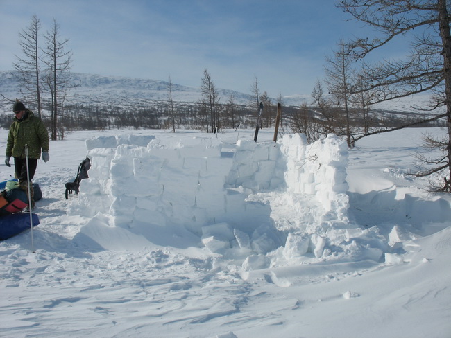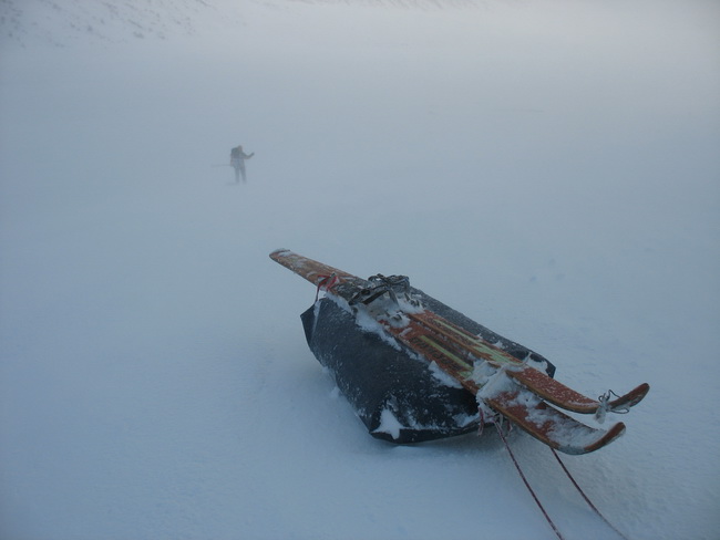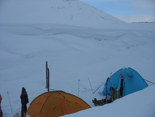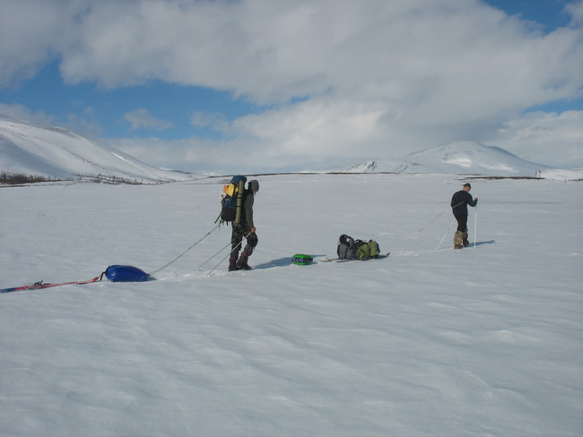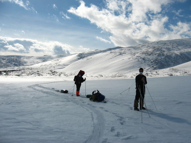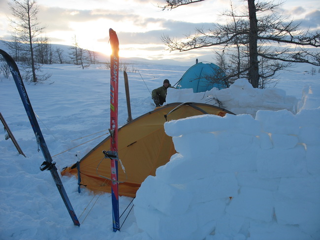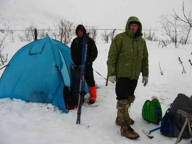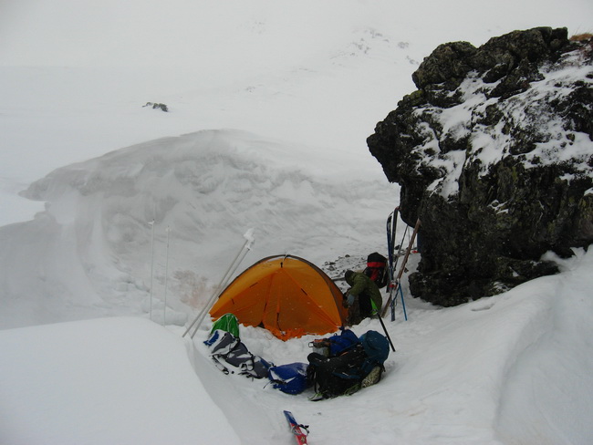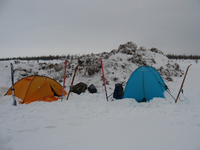 Горное не понадобилось. Ледорубы использовались однократно на крутом спуске, но чаще, как строительный инструмент. Пластиковые лыжи зарекомендовали себя удачнее, в сравнении с бескидами (повторю, что именно в этом походе). Жучка из ПВХ за счет большей объемности и легкого доступа внутрь выглядела удачнее пулевидных санок Климовича. В разных модификациях палок существенной разницы не выявлено. Палатка зимняя тройка Лени относительно тесная и дискомфортная в условиях непогоды была исключительно живуча и надежна за счет конструктивных особенностей.