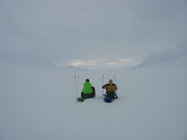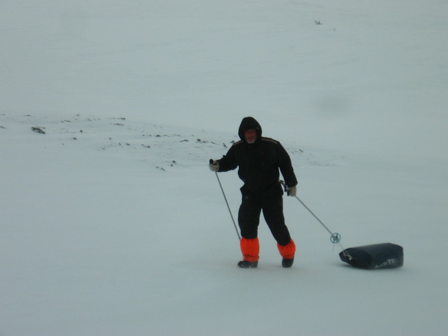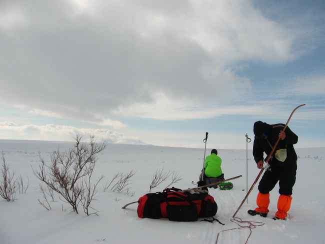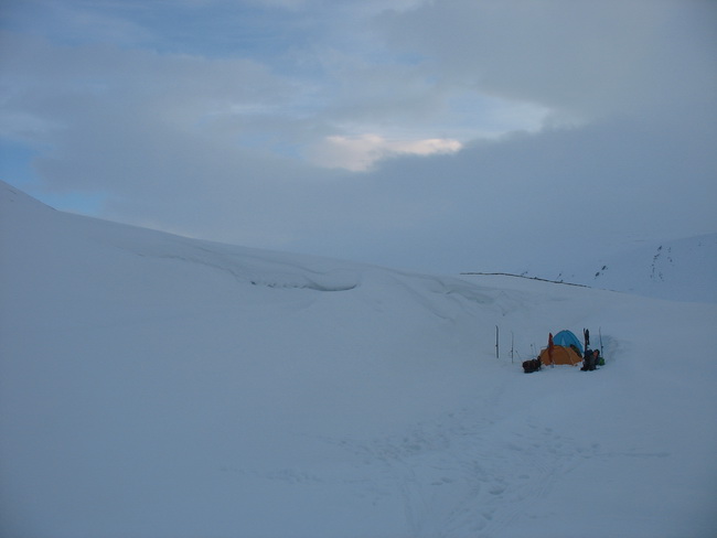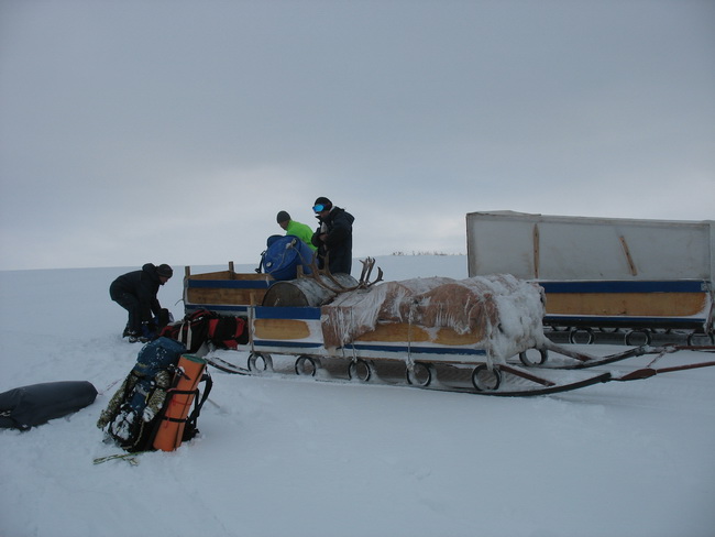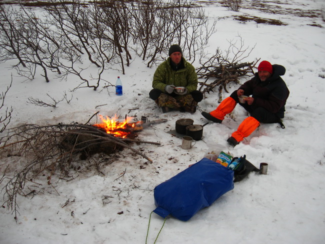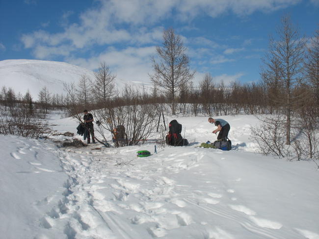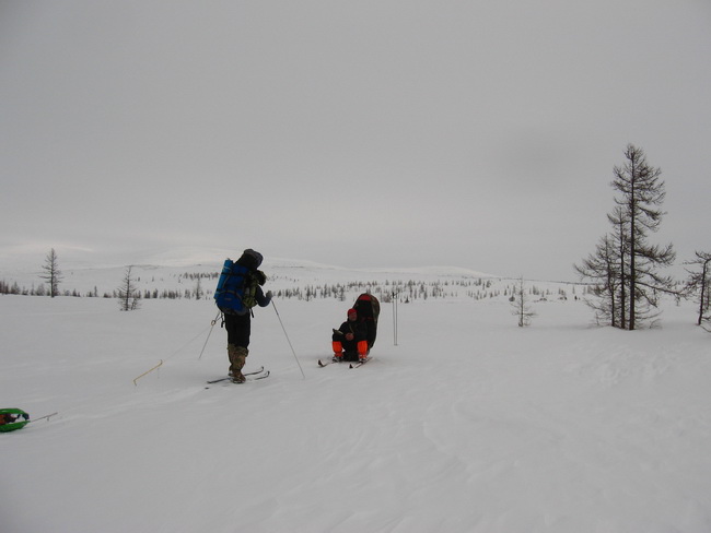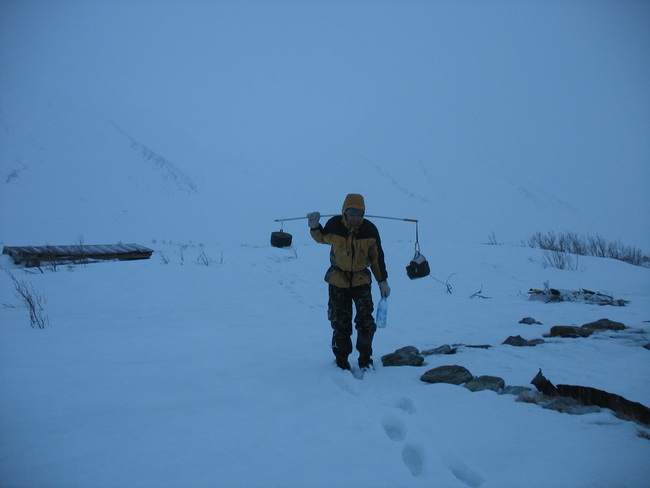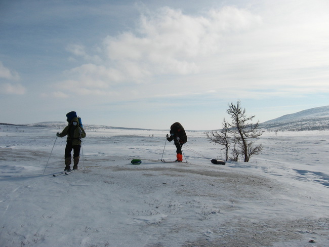 Горное не понадобилось. Ледорубы использовались однократно на крутом спуске, но чаще, как строительный инструмент. Пластиковые лыжи зарекомендовали себя удачнее, в сравнении с бескидами (повторю, что именно в этом походе). Жучка из ПВХ за счет большей объемности и легкого доступа внутрь выглядела удачнее пулевидных санок Климовича. В разных модификациях палок существенной разницы не выявлено. Палатка зимняя тройка Лени относительно тесная и дискомфортная в условиях непогоды была исключительно живуча и надежна за счет конструктивных особенностей.
