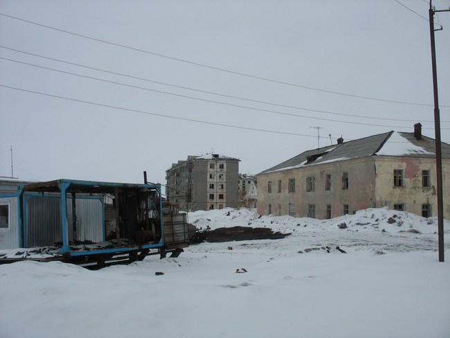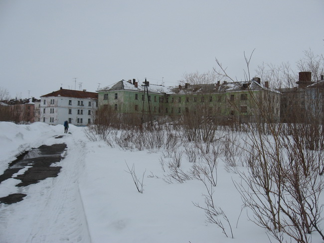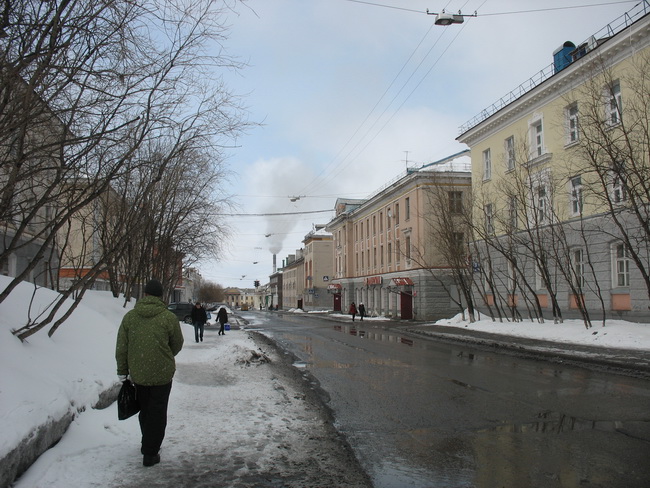 Глаз тяготился. Чтобы убить время, приходилось болтаться без дела по городу. Леня с Димой охотно заходили в магазины, но покупки сделали только в водочном – друзьям сувениры. Предстояла нудная дорога в поезде. Стоило подыскать какую-нибудь книжку. Кандидатом на покупку был учебник философии, Ленинградского издания 2008 года. Только он был уж больно дорог. Пришлось отказаться. Погода была теплая и располагающая к экскурсиям. Воркута в любую погоду город сумрачный и северно аскетичный. Едва ли приедешь сюда без нужды смотреть достопримечательности. Но мне нравилось. Даже появилось бодрое настроение. Пытался купить Диму, чтобы сфотографировать дебильные кадры возле каких то канализационных люков, но он не покупался. В завершение трех или четырехчасовой прогулки вернулись в общежитие. По дороге купили какой-то невкусной еды. Администратор в белой маечке разрешила нам поесть в общежитии.