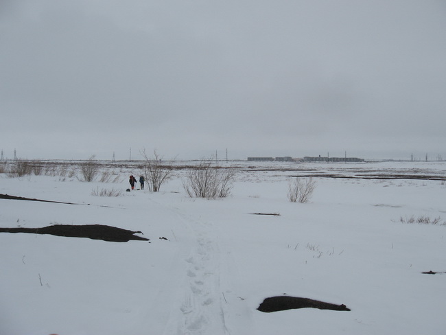 Так закончили мы маршрут, в том самом месте, где и планировалось, но только прошли мы эти 245 километров по отличной от задуманной траектории. Зачехлили лыжи и с ними наперевес отправились (здесь какие-то двести-триста метров) до автобусной остановки. Алгоритм действий знал Глаз, как дальше, куда и что.