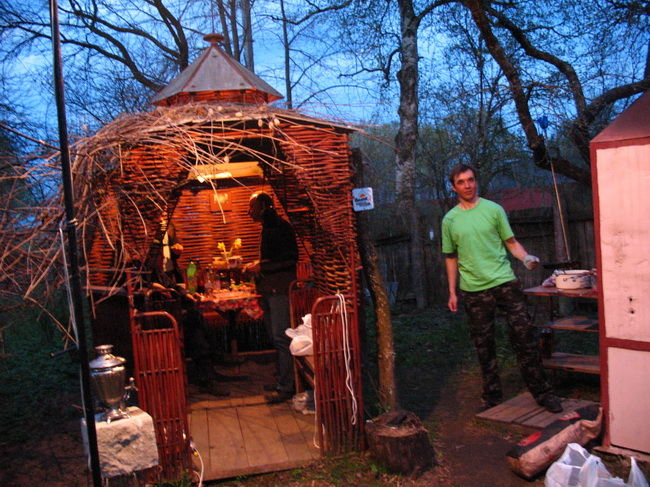 На следующий день собрались у Глаза в беседке посмотреть фотографии. Пригласили оппонентов в лице Славы и Андрюши Бая. Оппоненты совсем не оппонировали, а больше поддакивали, а в итоге просто поддали.