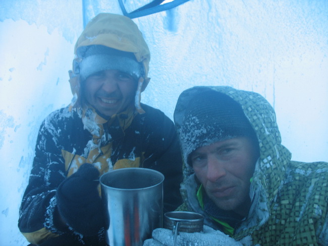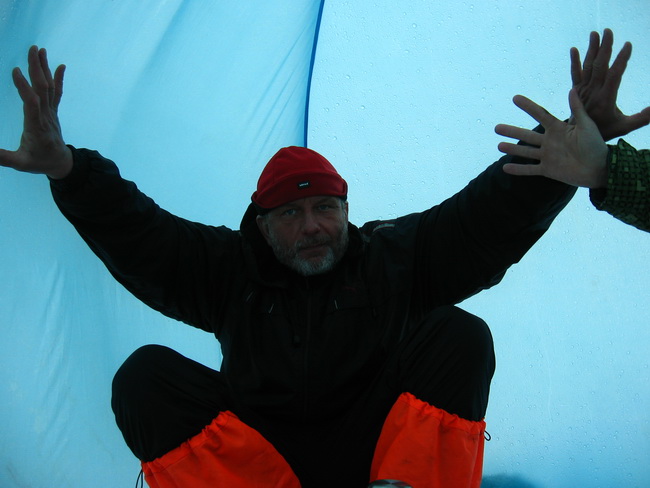 Когда поднимаешься утром, самое долгое и неприятное обуться и одеться. Замерзшие ботинки, бахилы. Обуться – это целый процесс. Я все это проделал первым, поскольку был дежурным, и выглянул наружу через щель в стенке. Все то же молоко, только ветер дует с точностью до наоборот: не с севера на юг, а сегодня с юга на север. Я залез обратно в палатку.