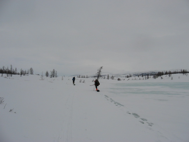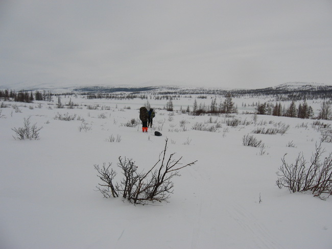 Сняли лыжи и пошли пешком. Снег был рыхлый, и мы его просто лопатили, что было значительно дороже, чем идти на лыжах. Но мало ли куда на лыжах попрет, а есть куда, в том числе и к пращурам.