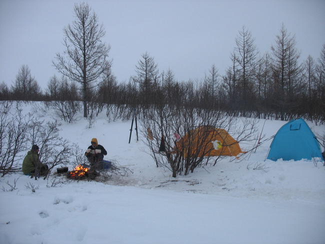 Когда лагерь устроен, появляется настроение и оптимизм. Начались разговоры, пошли рассуждения.Глаз напевал песни.