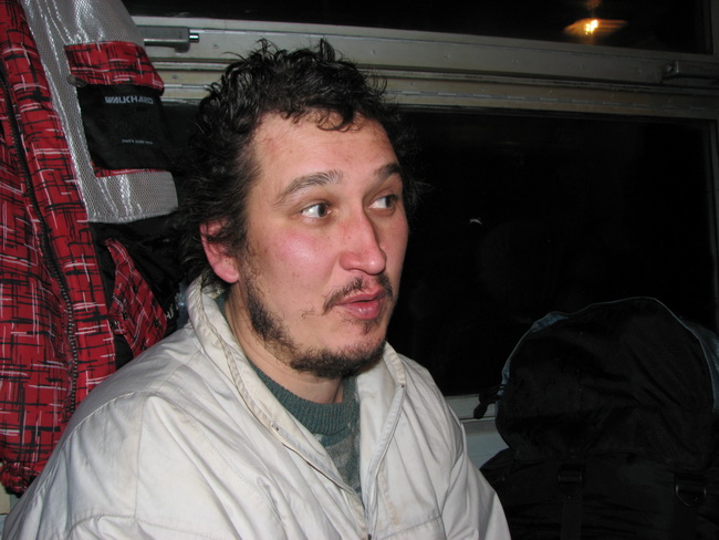Коля Беляшов, лоснящясе-довольный, в свойственной ему артистичной манере говорил, что мы все психи и что он сам не знает, что здесь среди нас делает. Примерно также он говорил и в тот раз и точно также, как и тогда, решил присоединиться к нам в последний день. Настроение в коллективе было приподнятое в предвкушении движения, драива и даже выпивки. Ехали мы в Гродзянку. В 21.17 пересели на пригородный поезд - тот самый "Веселый", где тепловоз М 62, один вагон пассажирский, и еще с пяток товарных. "Прикольный поезд" сегодня тоже был прикольным. Заполнен пассажирский вагон был наполовину. В том числе были тут также Максим М. - летчик из Орши и Могилевское Звено: Frank и Ашик (они сели еще в Сраных Осиповичах). Тускло подсвечивал свет. Билетами и порядком распоряжалась здесь брюзглая и чернявая проводница с крупной папилломой на щеке. Одну станцию проехали спокойно. После второй поезд вместо того, чтобы тронуться, содрогнулся и стал. Билетерша-проводница, напару с мужиком в железнодорожной фуражке, откуда-то здесь взявшимся, вывели из тамбура растерянного мудака, который дернул стоп-кран. Тутже поднялся человек из электората в максимально продуктивной на мысли и поступки степени алкогольного опьяненения и толкнул, возмущенный, нарушителя. Последний упал где-то на сидение возле нашей Оли.