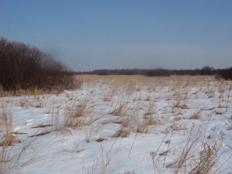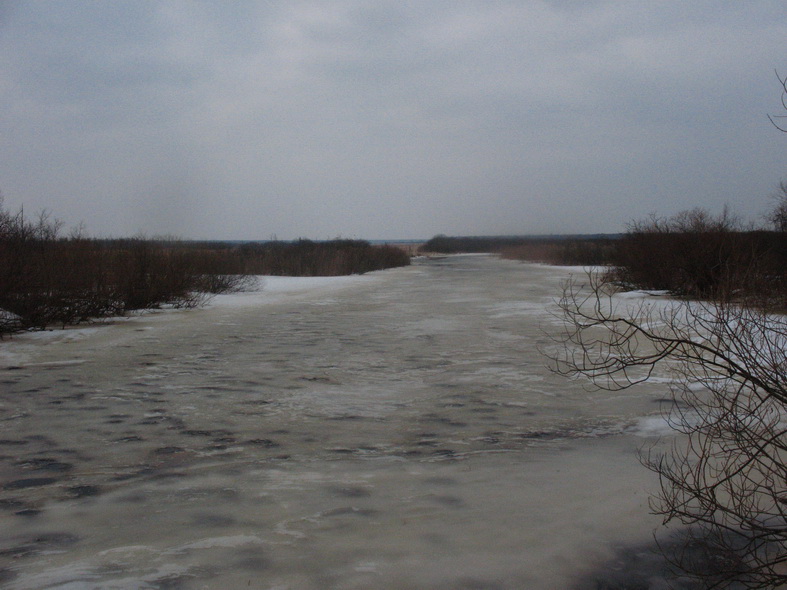 Междуречье Щары и Мышанки одиноко и мрачно. Куда ни кинь, вода среди снега, тростник и неприветливые ивовые шары. Влезли мы в сеть заброшенных, когда-то нарезанных здесь зачем-то каналов. Навигатор показывал наше местоположение на спутниковой картинке, но она плохо из-за этих как раз каналов привязывалась к карте. Оставалось продолжать двигаться на северо-восток, избегая затопленных участков.