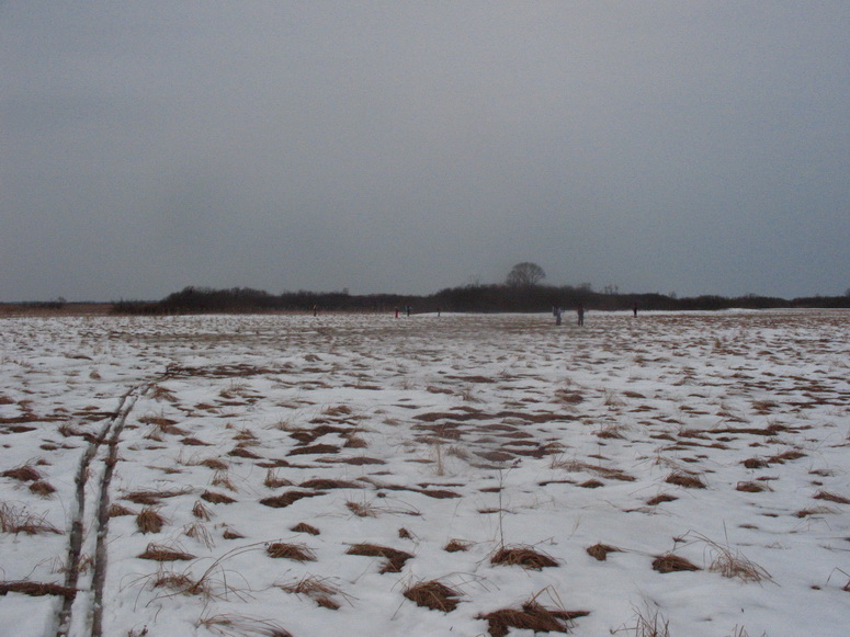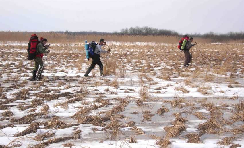 Однообразный нескончаемый заливной луг был между тем живописен и разнообразен. Все здесь сочеталось вместе: и лед и снег и вода и тростниковые метелки и потрепаные сосиски рогоза широколистного (камыш в простонародьи). Лыжники задевали за эти сосиски, они разрушались, рассыпаясь пухом.