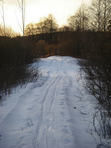 Не заставили себя ожидать и какие-то известия. Связались по телефону с Нестеровичем Марком Абрамовичем. Нестерович Марк Абрамович числился в штате, как ремонтник. Ремонтник востребован был уже тотчас, как только вышли из электрички. Игорь потерял от крепления прижимающую ботинок скобу. Всегда, когда мы ходим на лыжах, кто-нибудь теряет прижимающую ботинок скобу. S.klim говорит, что её нужно шнурочком привязывать. Андрей Русьянов настаивал сгоряча, что это девушка-контролер к тому, что была очень хорошим исполнителем, оказалась к тому же еще фетишистом - на память стырила. Короче, пробовали делать темляк из скотча. Делали-делали, Игорь дошел только до начала полигона и решил сделать реверс, возможно, благоразумно. Возможно, и поторопился - можно было хоть что-то да придумать.