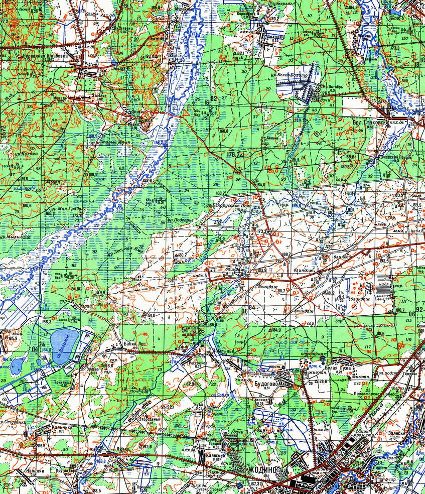 Маршрут через обширный Борисовский полигон обещался быть не скучным и очень зажигательным. По левую руку на карте отмечена "эл.подст.". Эл. подст. привязана была к линии электропередачи. Это была не совсем подстанция, а целый узел столбов, проводов, изоляторов. Точь-в-точь, как на карте, имелся левее животноводческий комплекс.