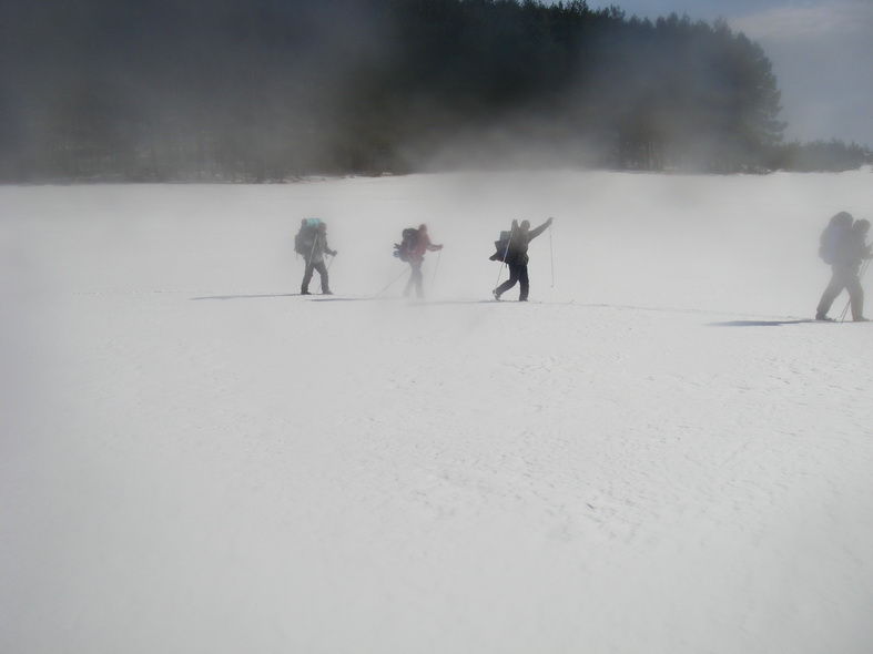 Когда мы вышли на остановке Пролетарская Победа, уже уверенно светило солнце. Хоть день был и морозный, но светило солнце. И не так скупо светило солнце, как это бывает в начале зимы, а уже весеннее, ласковое и ощутимо согревающее. Электричка стояла накрененная на бок. Остановка здесь прямо на повороте. На противоположной стороне ждали Лысый и Коля Армянин. Армянин он настоящий, ассимилировавший здесь. Габитус соответствовал армянину, даже ортодоксальному: акцент, голос, темперамент, внешность. Коля-Армянин ни в какие лыжные походы до этого не ходил, в зимнем лесу тоже не ночевал. Попал случайно на озеро Материнское на наш алкотрэш. На алкотрэше понравилось. Вот и решил пробовать дальше, уже ПВД (ПВД на ступеньку выше чем просто алкотрэш). Примерно из второго вагона вышел Михалок Саша, похожий на Сергея Михалка (Ляпис Трубецкой) - знакомый и дружбан Сережи Лысого. Разговаривал Саша гроулингом. Разбирается он больше в мотоциклах, меньше, конечно, в лыжах. Сережа сходил предварительно в пункт проката и теперь и Армянин и Михалок были при лыжах.