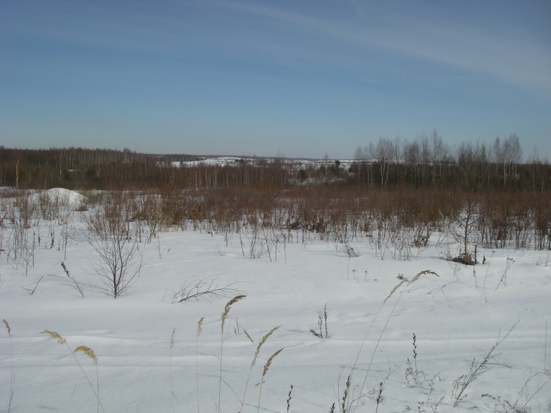 Открытый полигон довольно далеко просматривается. По всему окоёму расположились снежные барханы плавных холмов и более выраженных курганов. Лишь только в нескольких местах возвышались над снегом (не считая редких кустов и отдельных деревьев) мишени - иммитации огневых точек. Навряд ли полигон и по сей день действующий. И довольно далеко виднелась сизая стена леса. Оттуда до реки остается примерно треть пути. Шли не медленно, не быстро. Лыжи отдавали назад, но терпимо. Пробовали подмазывать, но мази особенно не держали. Было живописно и покойно. Как всегда, спустя какое-то время стали растягиваться. Я постепенно и как будто незаметно отсался один. Между авангардом и арьергардом. Куда тут денешься с лыжни? Никуда не денешься. Вскоре лыжня перешла по мостку через своеобразную небольшую реку Бродня. Здесь визуально вполне байдарочный формат. Но по энцеклоклопедическим сведениям он не водоносна эта Бродня (1,4 кубометра/сек). Дороги, что обозначены на карте, выходит чуть ли не Бродвеи. На деле это запущенные и зарастающие тропы. Вошли в лес. Стали встерчаться все чаще и чаще переваленные поперек деревья. Попадались ненароком и звериные тропы: копытных и не копытных. Кроме того были и человеческие следы. Наверняка охотники, которые (легально и не легально) не против, видимо, посетить эти не заселенные угодья.