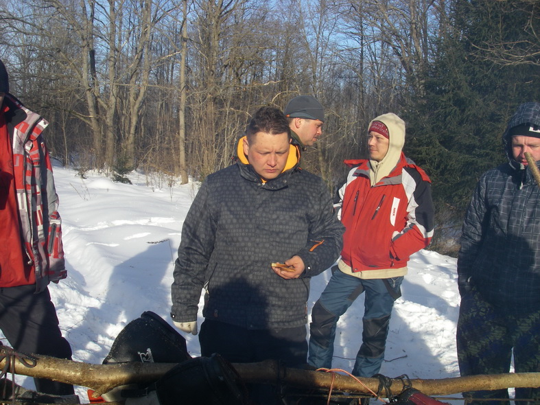 Заключительный участок прошли на север в основном по пересеченке, ориентируясь на стрелку компаса. Ловили постоянно по лесу человека на снегоступах, который пытался убежать на восток. Гонялись, окликали, звали. Не потеряли, точно также, как и вчера благодаря Марку Абрамовичу. Стал слышен редкий шум проезжающей машины. Наконец, деревья расступились и мы увидели трассу Логойск-Зембин. В ста метрах стоял на обочине ожидающий нас желтый бус марки Мерседес Спринтер. Этого не может быть. Было еще светло.
