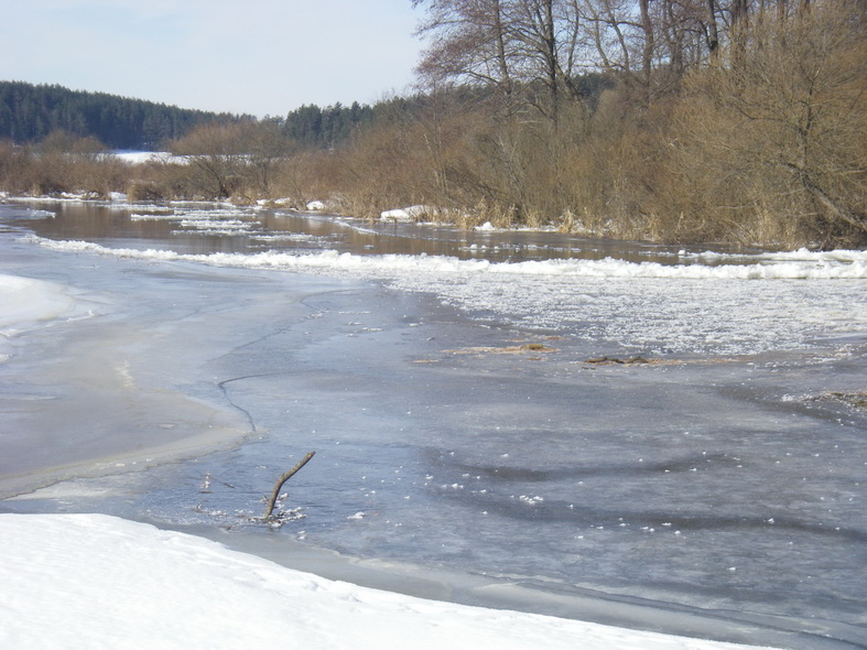 Ситуация с рекой в сравнении с вечером разительно изменилась. По ней плыли льдины. Вчера еще ничего такого не было. Они цеплялись за затор возле свай моста, но течение продолжало толкать и напирать. Лед с тихим шелестом протискивался, прощемливался и проползал дальше. Река как будто была живая. Этот тихий шелест казался зловещим. Хуже того, что вдоль берегов намерзло прозрачный закраин. Уже той толщины, когда еще ломаются, но уже надо чем-нибудь дубасить.