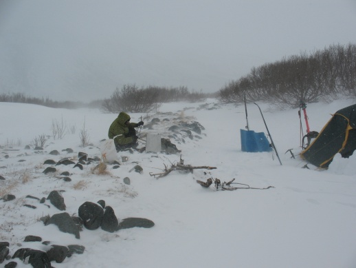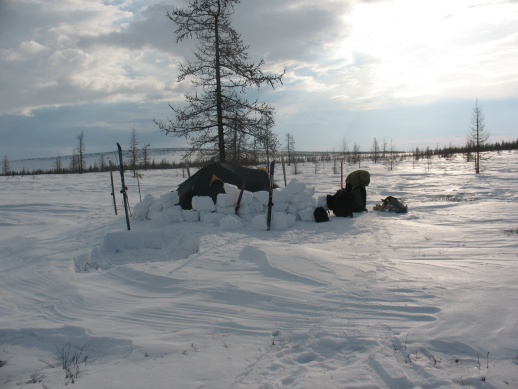 Мы не спешили его вытаскивать, чтобы не обрушить. А то будет, что отдыхали на Полярном Урале, прошли поди весь поход, а по дороге домой его под снег замыло.