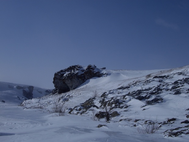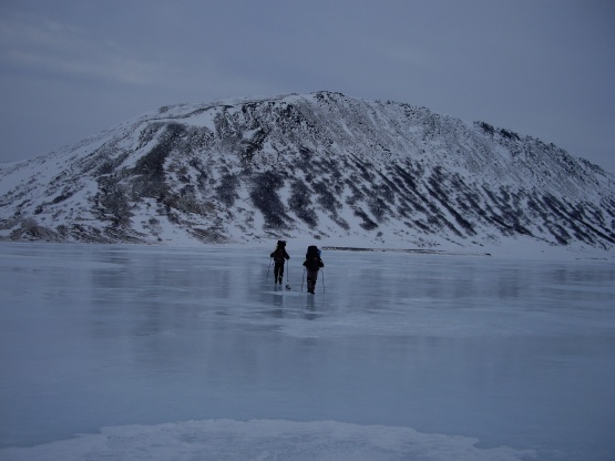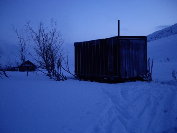 Озеро Гердиз-Ты появилось неожиданно, его мы ожидали увидеть за следующей высоткой (Сергей им придумал термин "пупырь"). Сомнений не было насчет озера. Был тут и хилый рыбацкий сарай. Войти в него было решительно невозможно, со стороны озера был вход, и был он завален несколькими кубометрами снега.