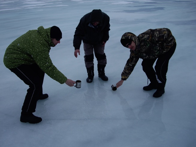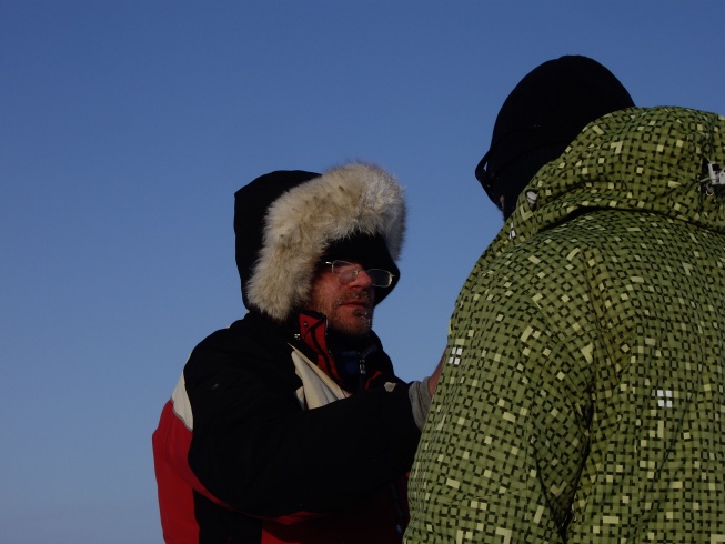 Пили воду, стоя на льду, зачерпывая кружкой прямо из лужи под ногами. Перекусили сухой колбасой и шоколадкой. Полковник дальше идти не хотел совершенно, даже немного обижался. Настаивал остаться здесь.