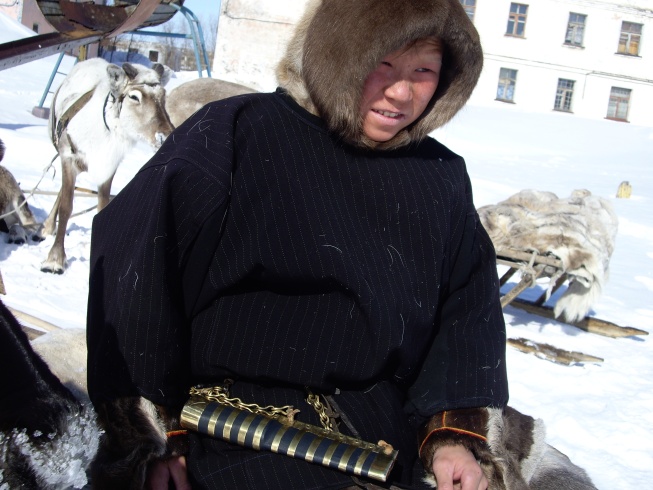 Это был ненец. Звали Егором. Живет двумя семьями в Чуме. Занимается оленеводством. Оленей у них двести. Это немного. Он был где то моего возраста. Но, как известно, выглядят они гораздо старше своих лет, особенно женщины, если им под сорок – это уже глубокая старуха. Отмечались из элементов одежды штаны из оленьей шкуры. Подвезти он был не против, но если только за деньги. Деньги спросил очень не слабые. Сторговали мы четверть. Вещи увязали веревкой. Глаза усадили на сам буран, остальные поехали в санях. Буран был маломощный и тянул нас с вещами не без натяга. Спидометр показывал под 30 километров в час. Постоянные кочки. Сидящие в санях, были в спартанских условиях, постоянно находились под угрозой оттуда вылететь. На полпути ненадолго останавливались, чтобы остыл двигатель.