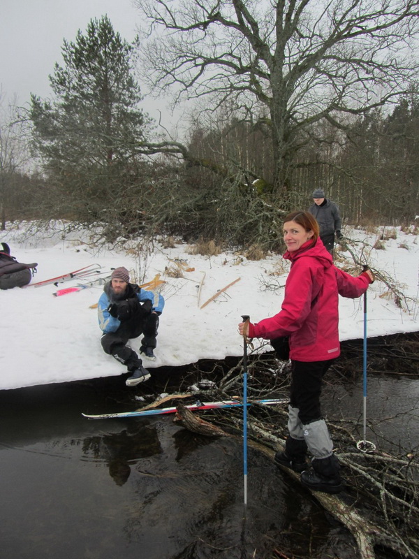 Далее по программе была переправа через реку Смердея. Река оказалась всё же скорее ручьем, запах ее полностью оправдал данное ей наименование. Мощности предшествовавших походу морозов для простой переправы не хватило, река оказалась мокрой.