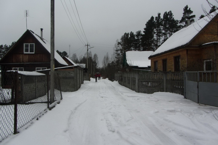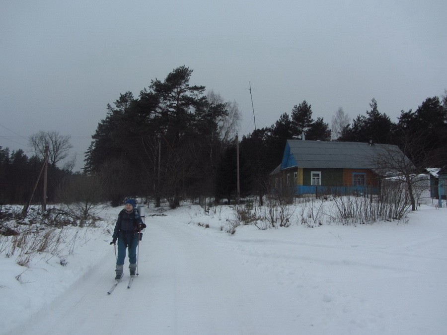 Немного погодя вышли опять на дорогу, на сей раз настоящую, с асфальтом. По ней идти нормально было невозможно почти ни на чем, поэтому деревню с магазином на перекрестке встретили с облегчением, переросшим в воодушевление, когда выяснилось, что лыжи можно снимать - до станции оставался всего километр.