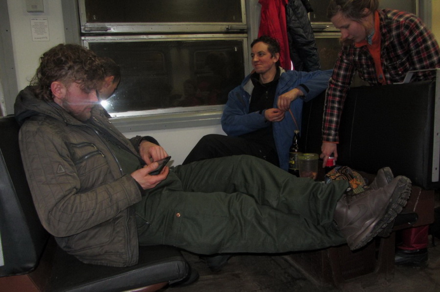 Вечерний дизель вез неожиданно много людей, главным образом студентов. 2 кондукторши в вагоне туристам до Минска обрадовались, незамедлительно поделили нас между собой и наотрез отказались продать мне 2 билета (на меня и Аню), поскольку Аня “досталась” второй кондукторше.