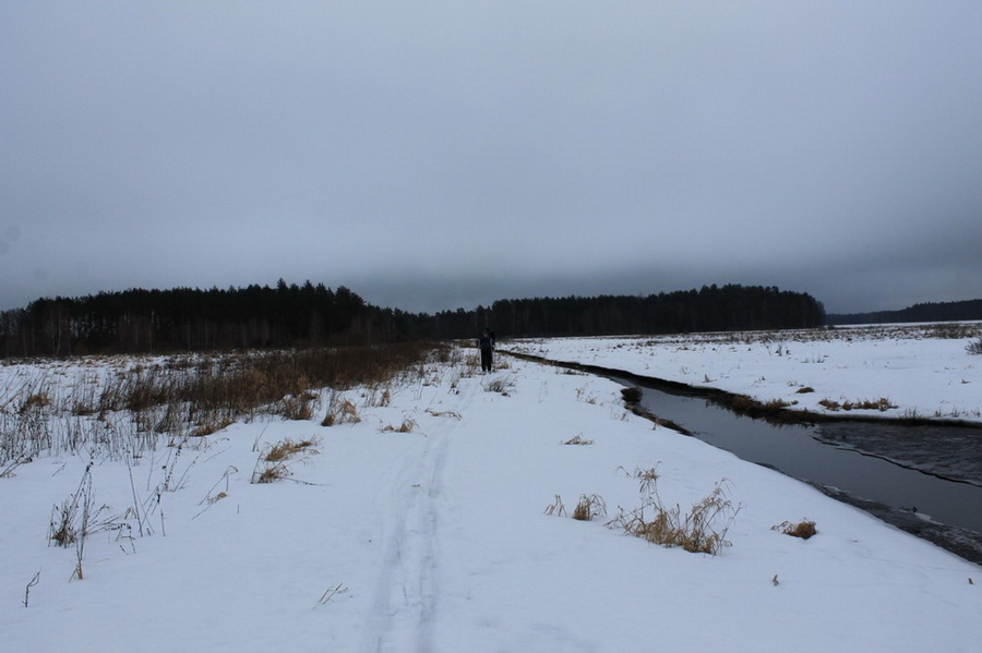 Выбрались на идущую вдоль реки дорогу. Этот момент окончательно надломил боевой дух. Идти по болотистым кочкам на лыжах - определенно не подарок, но скользить по раскатанному гололеду дорожки оказалось выше моих сил, особенно, когда я убедился, что 8 км пути мы преодолели за примерно 5 часов.