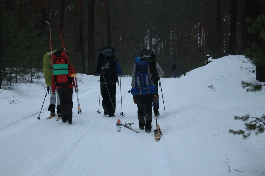 Например, в октябре произошел поход в болото (года 3 назад мне такое не пришло бы и в голову). Теперь вот лыжный поход. Есть и еще кое-какие планы разной степени оголтелости. А началось всё еще в декабре, когда Миша Трафимович предложил идти на лыжах. Тогда не было у меня ни моральной, ни материальной готовности к подобному безрассудству, а уже через пару недель появилось желание попробовать, еще месяц спустя трансформировавшееся в очередной поход, на этот раз вдоль Вилии.