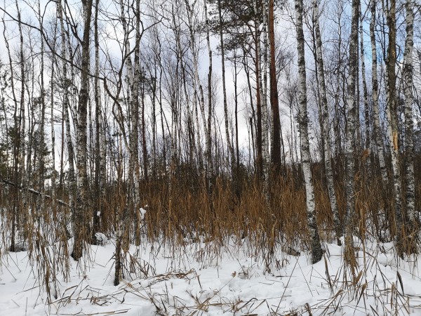 Участок пути до первого окна классического зимнего болота запомнился полосой препятствий по пересеченке. Лыжи позволяли не проваливаться в снег, но имела место своеобразная акробатика с переступанием частых веток и кочек.