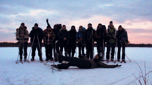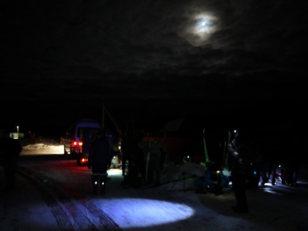 Старт. Полночь с пятницы на субботу, пару остановок от «Каменной горки». Тепло и ярко одетые люди в процессе дегустации содержимого передаваемых друг другу фляжек. В сторонке лыжи и рюкзаки, там же маршрутка с прицепом. Глаз в бабочке поверх чего-то спортивного, из переносной колонки звучит «Распутин», все радуются. В толпе выделяется по-городскому одетая девушка в длинном пуховике, с небольшим рюкзаком и привязанным к нему спальником. Базилиус ухмыляется в бороду и щелкает объективом. Опознав среди лыжников Мориарти, радостно пытаюсь заключить его в объятия вместе с рюкзаком.